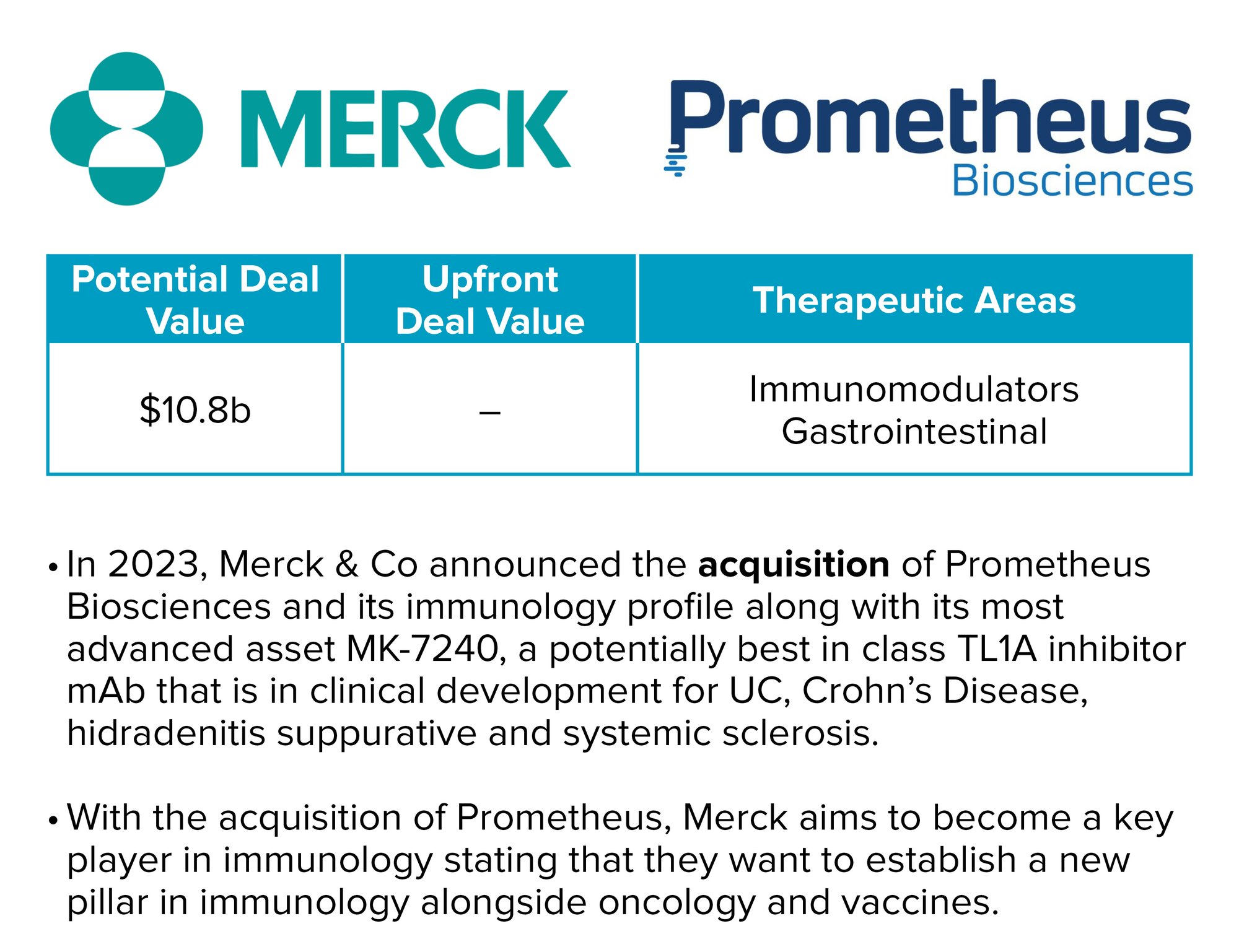 Prometheus Biosciences (acquired by Merck & Co), Sanofi, Roche, Spyre Therapeutics, Priovant Sciences, BIOCAD, Vial, Earendil Labs, Absci.