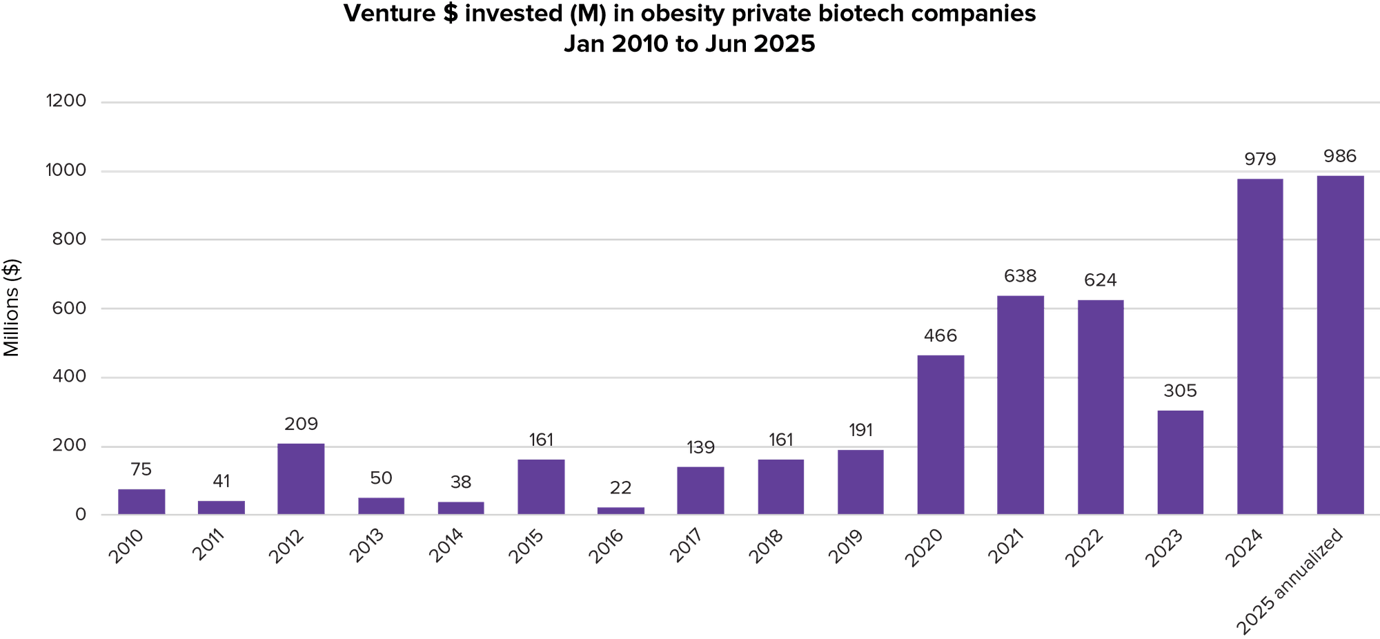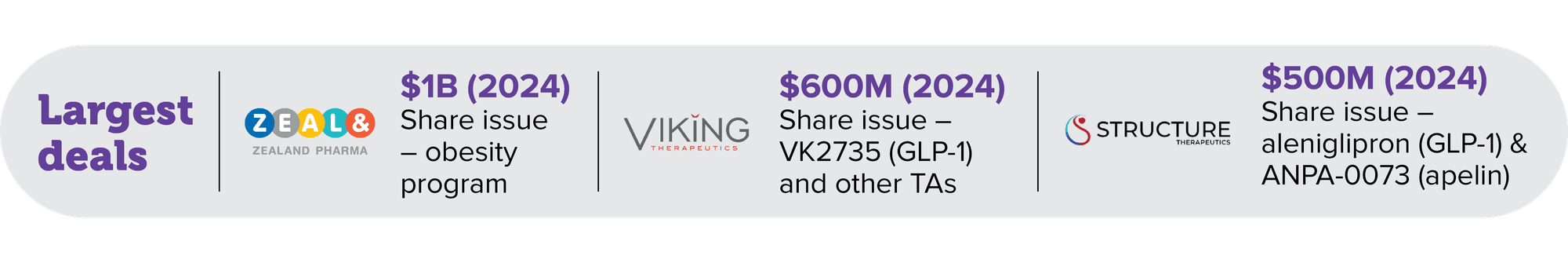 Biopharma is leveraging a variety of funding mechanisms to support obesity R&D. Venture capital, IPOs, and share issues are fueling early-stage innovation, with Series A rounds playing a critical role in helping startups progress into clinical development.